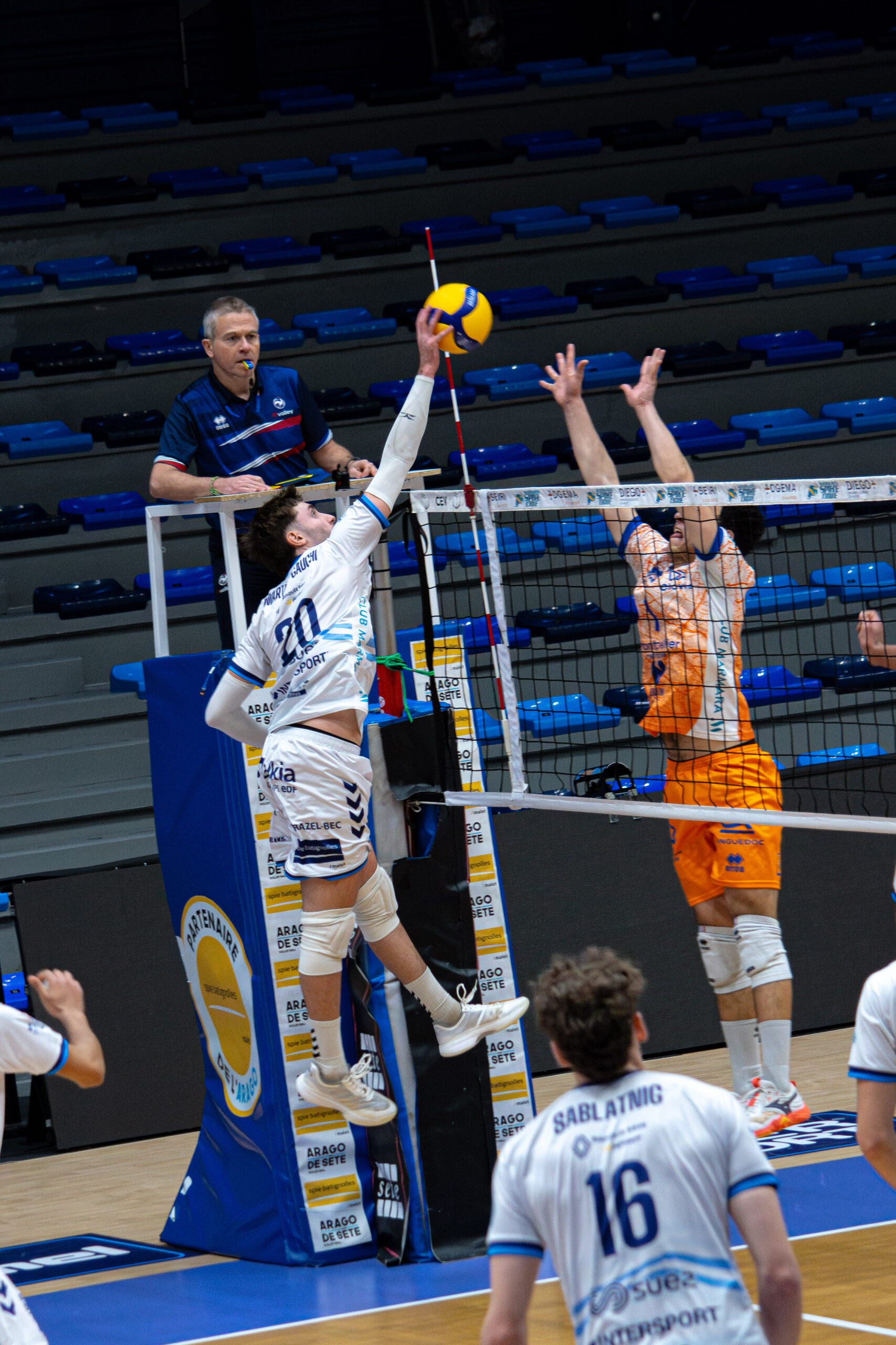 Après s’être inclinés à Cannes mercredi, nos joueurs ont su relever la tête et s’imposent face à Montpellier 3 sets à 1 (23:25, 25:23, 30:28, 27:25).