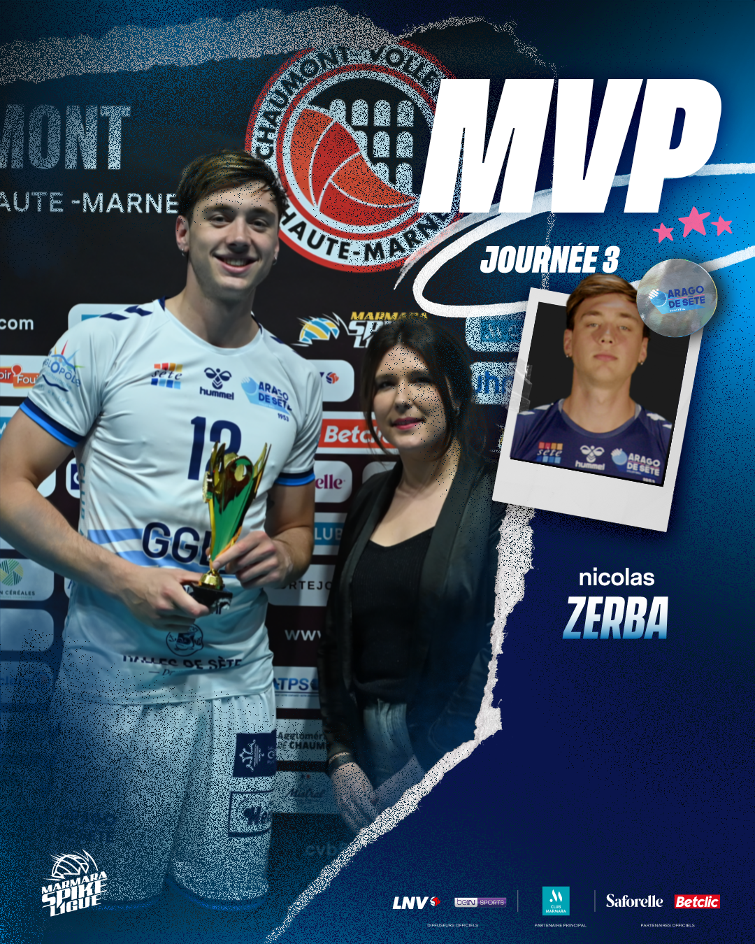 L’Argentin Nicolás Zerba a été désigné MVP de la rencontre. Véritable patron au centre du filet, il a inscrit 7 points à l’attaque (64% d’efficacité), réalisé 3 blocks décisifs et signé 1 ace. Une performance complète qui a symbolisé la maîtrise sétoise lors de cette 3e journée.